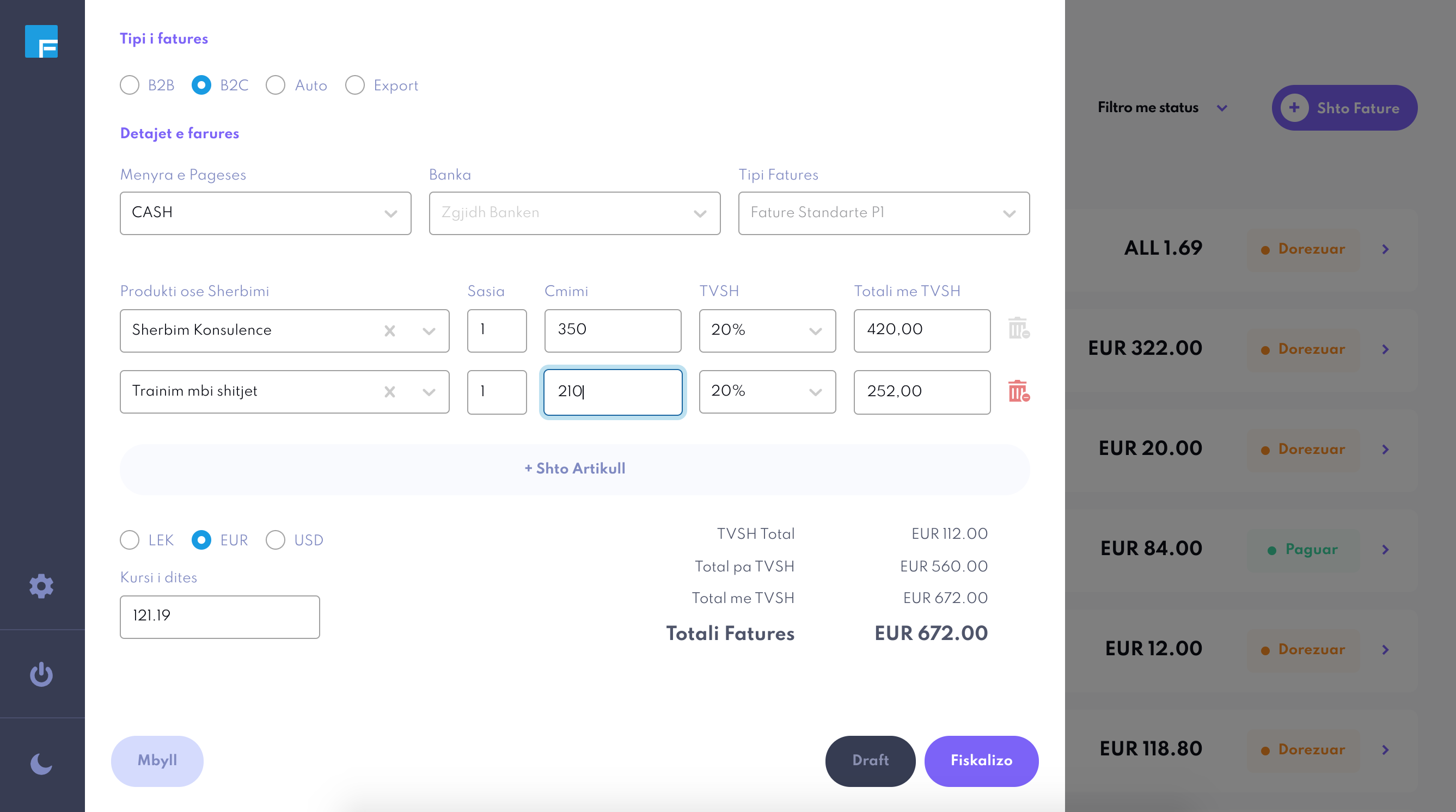 Fatura elektronike krijohet automatikisht për biznese në Shqiperi, dhe pagesa me bank.